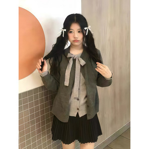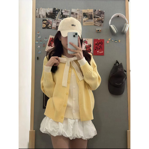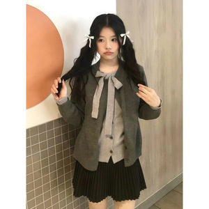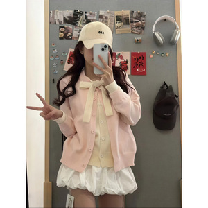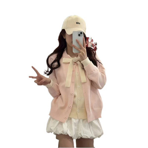韩系撞色假两件拼接针织衫2025秋季新款温柔风穿搭开衫毛衣外套女