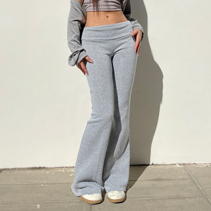 2025冬季个性运动风低腰卷边喇叭裤欧美街头辣妹修身纯色休闲长裤