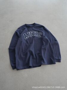 日系N字母刺绣T恤!秋季新款字母刺绣圆领宽松百搭男女款长袖T恤