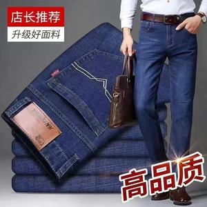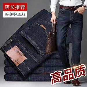 干活弹力牛仔裤男士直筒宽松大码男装休闲中年耐磨便宜工作长裤子
