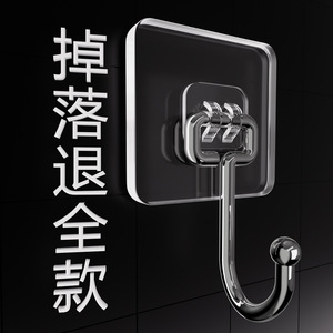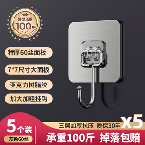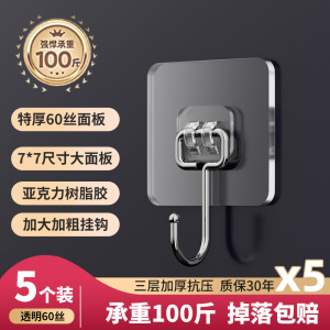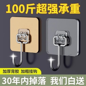 挂钩强力粘胶免打孔强力承重厨房墙壁贴重物无痕不锈钢透明粘钩子