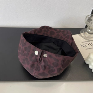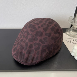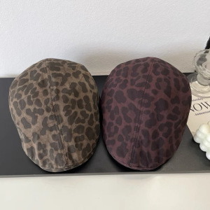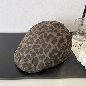 批发25年早秋新款美式经典豹纹前进帽子女大头围显脸小贝雷帽潮