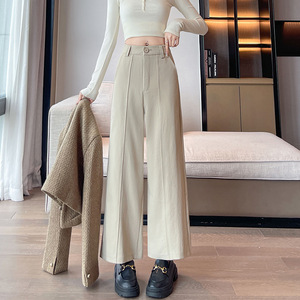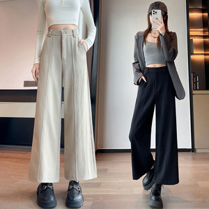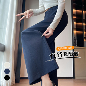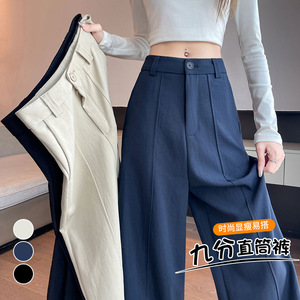 洗水棉西装阔腿裤女2025秋季窄版高腰显瘦小个子九分直筒休闲裤子