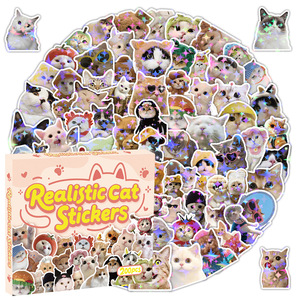 200张可爱猫咪镭射闪光膜个性手帐ins风装饰水杯手机卡通儿童贴纸