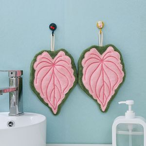挂式叶子珊瑚绒擦手巾厨房洗手间家用抹布新款树叶加厚吸水擦手帕