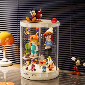 旋转盲盒收纳展示盒圆形手办展示柜防尘泡泡玛特labubu透明展示盒