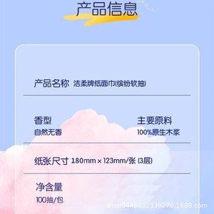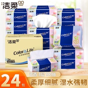 洁柔缤纷抽纸无香100抽3包家用宿舍面巾餐巾纸擦手卫生纸巾实惠装