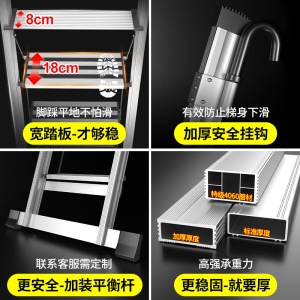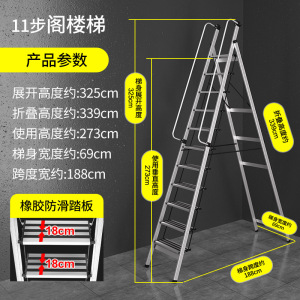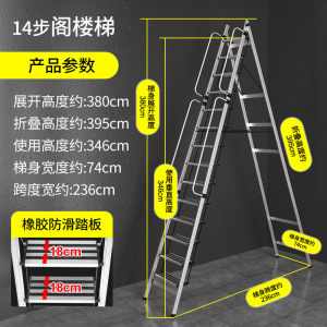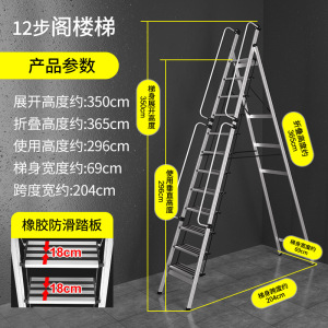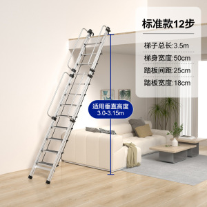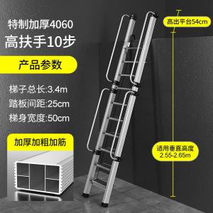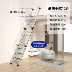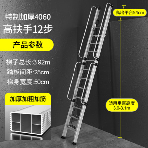 阁楼楼梯家用伸缩梯子室内外可折叠宽踏板铝合金扶折叠梯伸缩步梯