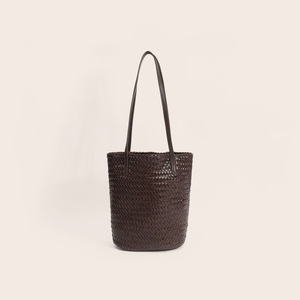 2025新款高级感头层植鞣牛皮手工编织包大容量单肩腋下包水桶包女