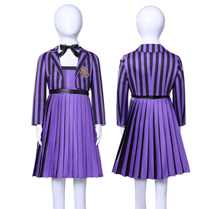 跨境万圣节星期三-紫色女款条纹校服cosplay服装二次元表演亚当斯