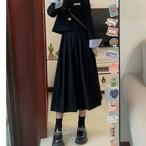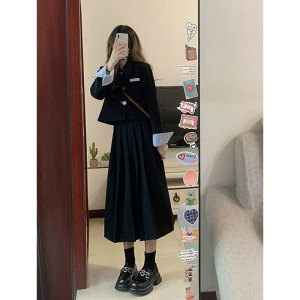 学院风精致黑色西装套装女高级感春装新款外套半身裙两件套小个子
