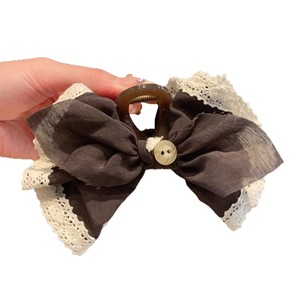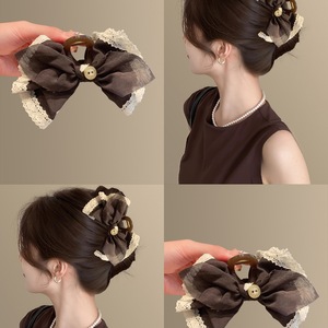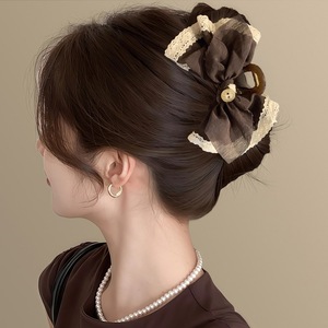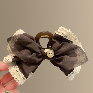 卡布奇诺~复古高级感棕色抓夹蝴蝶结蕾丝花边发夹2025新款鲨鱼夹