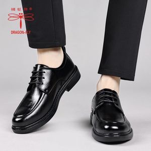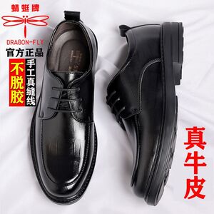 蜻蜓牌真牛皮商务正装男士面试英伦软底休闲男鞋新郎结婚伴郎皮鞋
