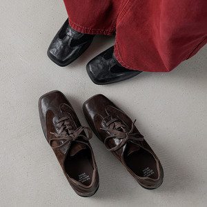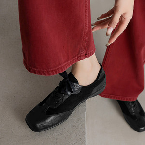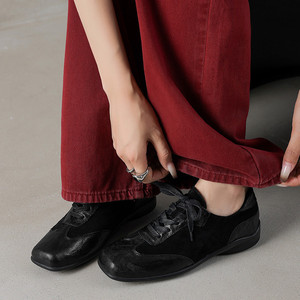 复古舒适方头系带高粗跟深口单鞋女2025年新款秋季小皮鞋休闲鞋