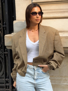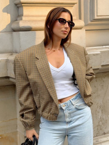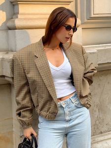 复古老钱风格纹西装外套女2025秋冬宽松短款英伦风小西服通勤女装