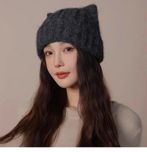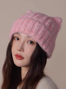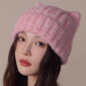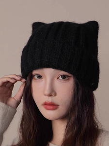 秋冬帽子女甜美小恶魔可爱耳朵毛线帽防寒护耳保暖针织帽骑行冷帽