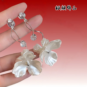 2025法式玉兰花朵长款耳环女夏天高级感轻奢度假风耳坠小众设计