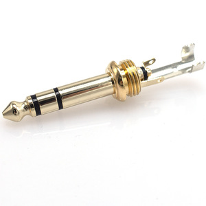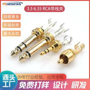 rca莲花头6.35插头带线夹3.5插头带线夹纯铜镀真金