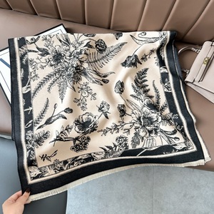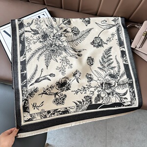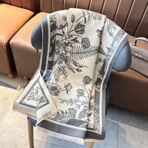 民族风复古花卉仿羊绒披肩女秋冬出游百搭多功能保暖围巾双面围脖