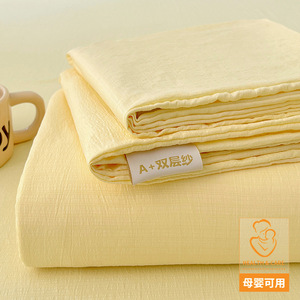 A类双层纱床单单件2025新款四季通用宿舍单人纯色被单枕套三件套3