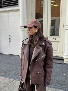 时尚辣妹机车纯色翻领长袖皮衣夹克外套女2025跨境欧美风新款热卖