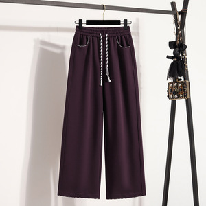 2025秋季新款花边撞色直筒卫裤女高腰显瘦简约休闲百搭阔腿运动裤