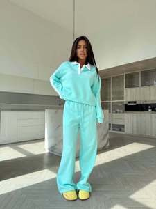 欧货潮流秋冬撞色设计感套装 翻领立体刺绣长袖卫衣+直筒抽绳长裤