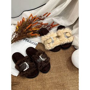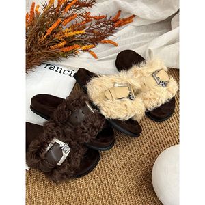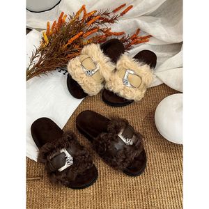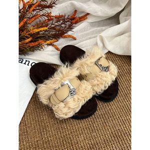 壹米恩复古拼色条纹毛毛拖鞋2025秋冬水貂绒舒适柔软日系毛毛拖鞋