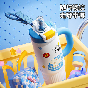 新款卡通吸管杯316不锈钢保温杯冰霸杯学生大容量保冷保温车载杯