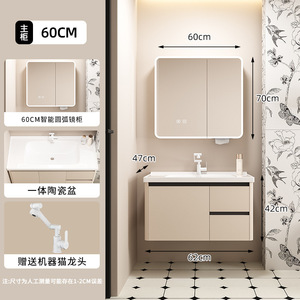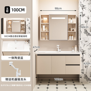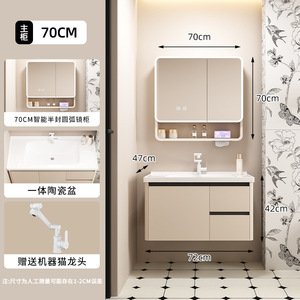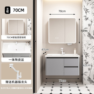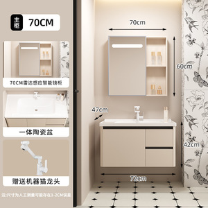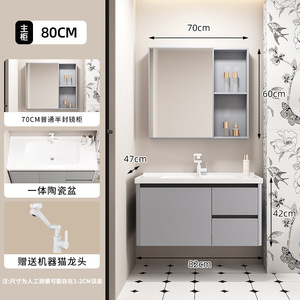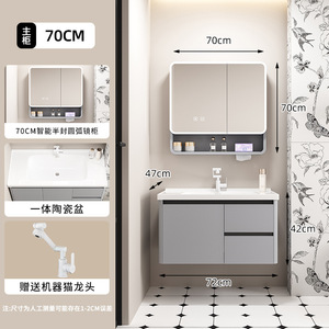 浅灰浴室柜蜂窝铝合金一体陶瓷盆雷达智能镜柜壁挂厕所镜收纳抽屉