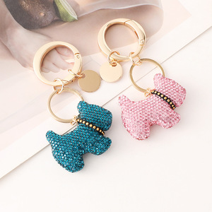 跨境热销满钻创意小狗钥匙扣包包钥匙链挂件法斗情侣款摆摊小礼品