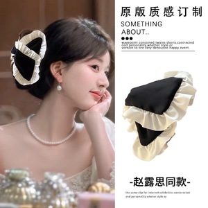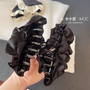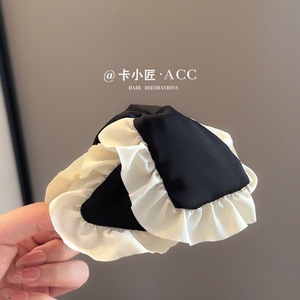 法式高级感褶皱花边三角抓夹女大号盘发鲨鱼夹子后脑勺发量多发夹