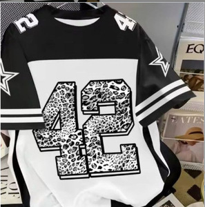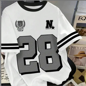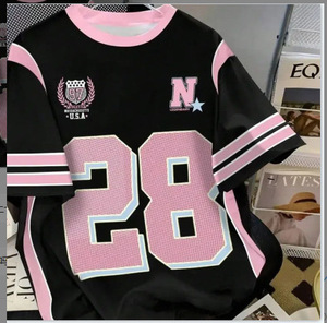 2025美式高街休闲运动棒球领撞色短袖长袖t恤女夏季宽松印花半袖