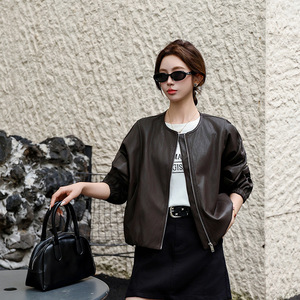 韩版短款皮衣外套女2025年秋季新款圆领百搭宽松免洗金属丝皮夹克