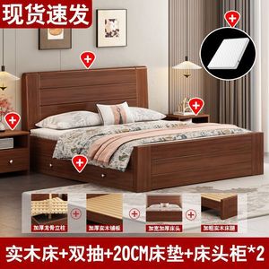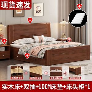 主卧双人床出租屋加厚耐用.米单人床全实木床.米家用中式.