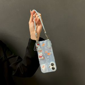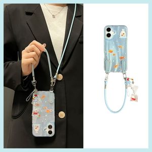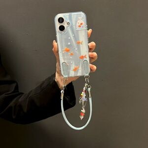斜挎镭射蓝底金鱼适用苹果16promax手机壳15pro新款14/13/12/11