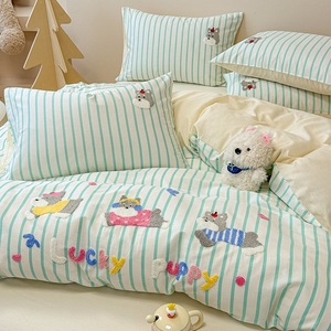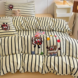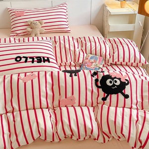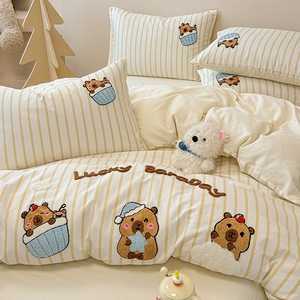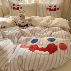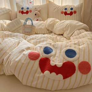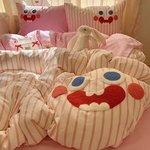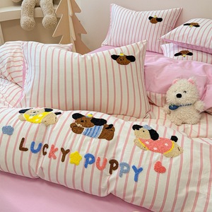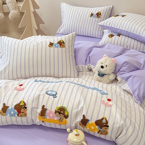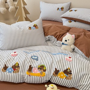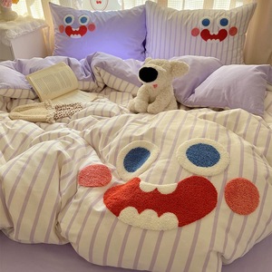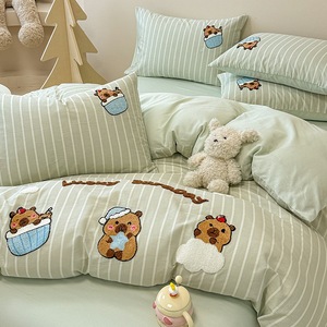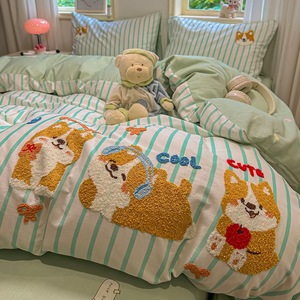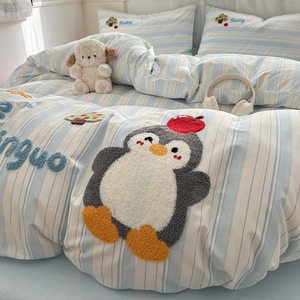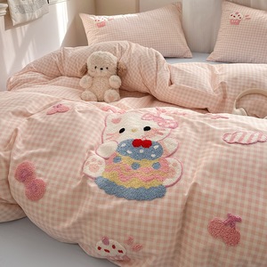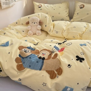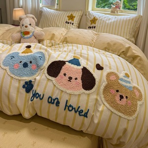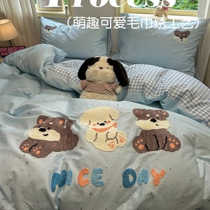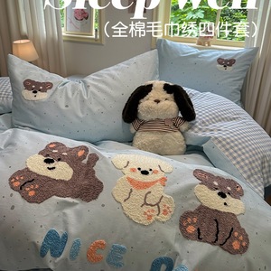 卡通全棉毛巾绣床上四件套纯棉床单被套儿童床品大学生宿舍三件套