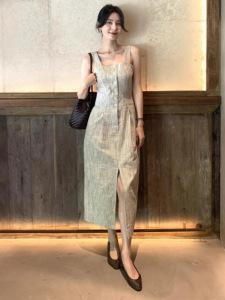 法式背心连衣裙女夏季2025新款高级感气质通勤修身收腰显瘦长裙子