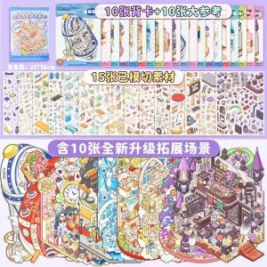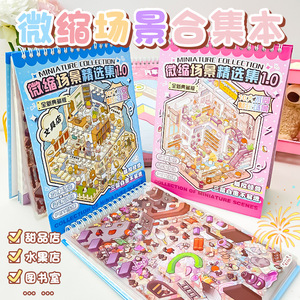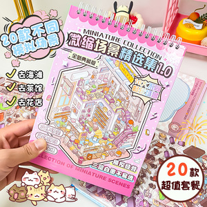 微缩造景贴纸合集本文具店洗衣房场景贴纸书3D立体手账拼贴本
