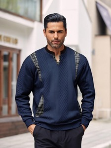 2025秋季男装跨境亚马逊独立站男士提花V领休闲卫衣欧美外贸长袖