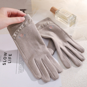 保暖手套女士千鸟格优雅户外骑行防寒防风单层蕾丝春秋季触屏手套