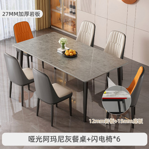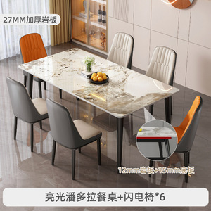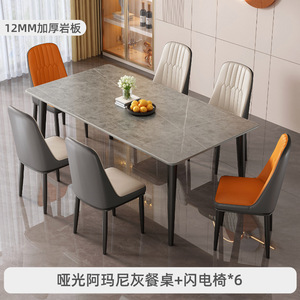岩板餐桌轻奢现代简约家用小户型简易客厅饭桌子长方形餐桌椅组合