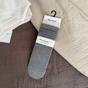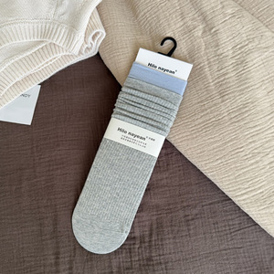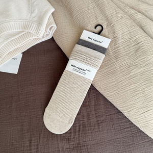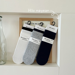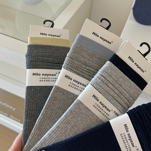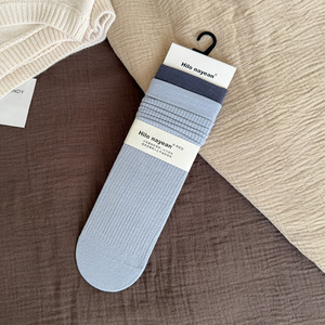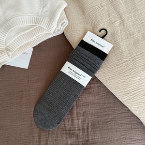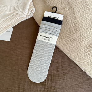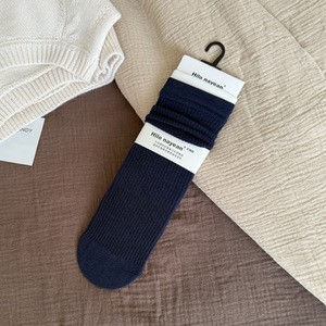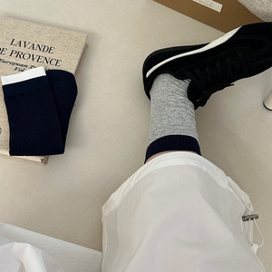 南业秋冬ins风韩系袜子女高橡筋双罗口小腿袜撞色无骨中筒堆堆袜