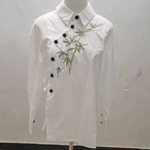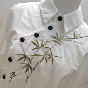 长期现货2025秋刘诗诗同款新中式白色翻领衬衫竹子印花国风上衣女