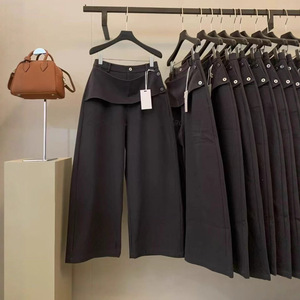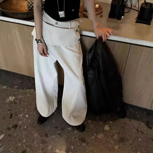 韩系假两件设计拼接屁帘小众阔腿裤女2025秋季新款气质休闲拖地裤