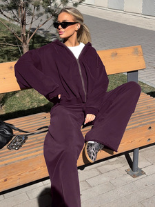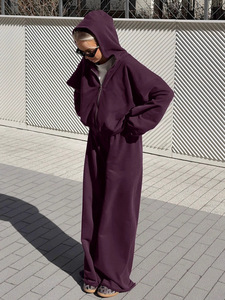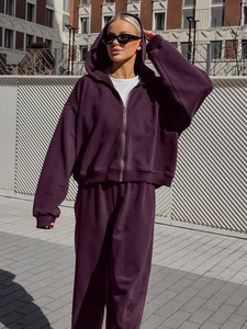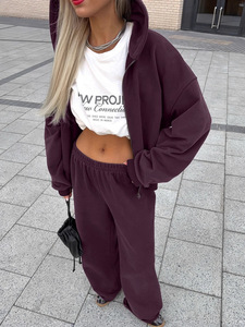 欧美跨境街头紫色运动连帽卫衣套装女2025秋冬时尚外套长裤两件套