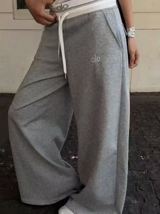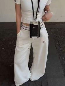 新款alo织带字母拼接阔腿裤25秋季时尚休闲高腰抽绳松紧腰长裤女