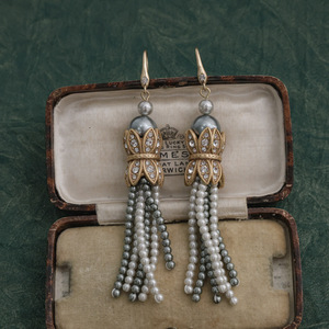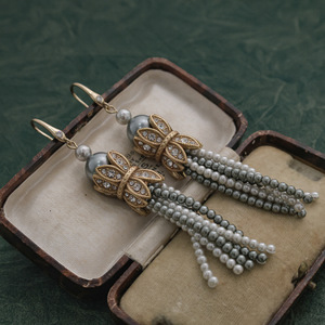 多层琉璃珍珠项链耳钉三件套花苞流苏奢华中古女银针耳饰首饰套装