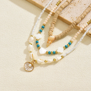 爱心珍珠项链批发跨境复古多层吊坠时尚钥匙樱桃欧美锁骨链女项饰