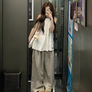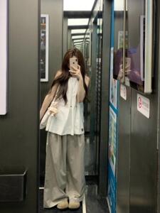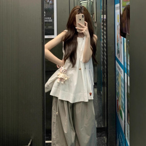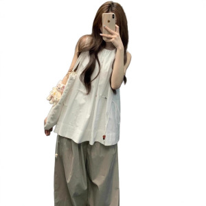 设计感小众休闲运动套装女夏季无袖抽绳上衣薄款工装阔腿裤两件套